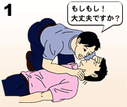 呼吸がなければ、ゆっくり2回吹き込む(人工呼吸) |